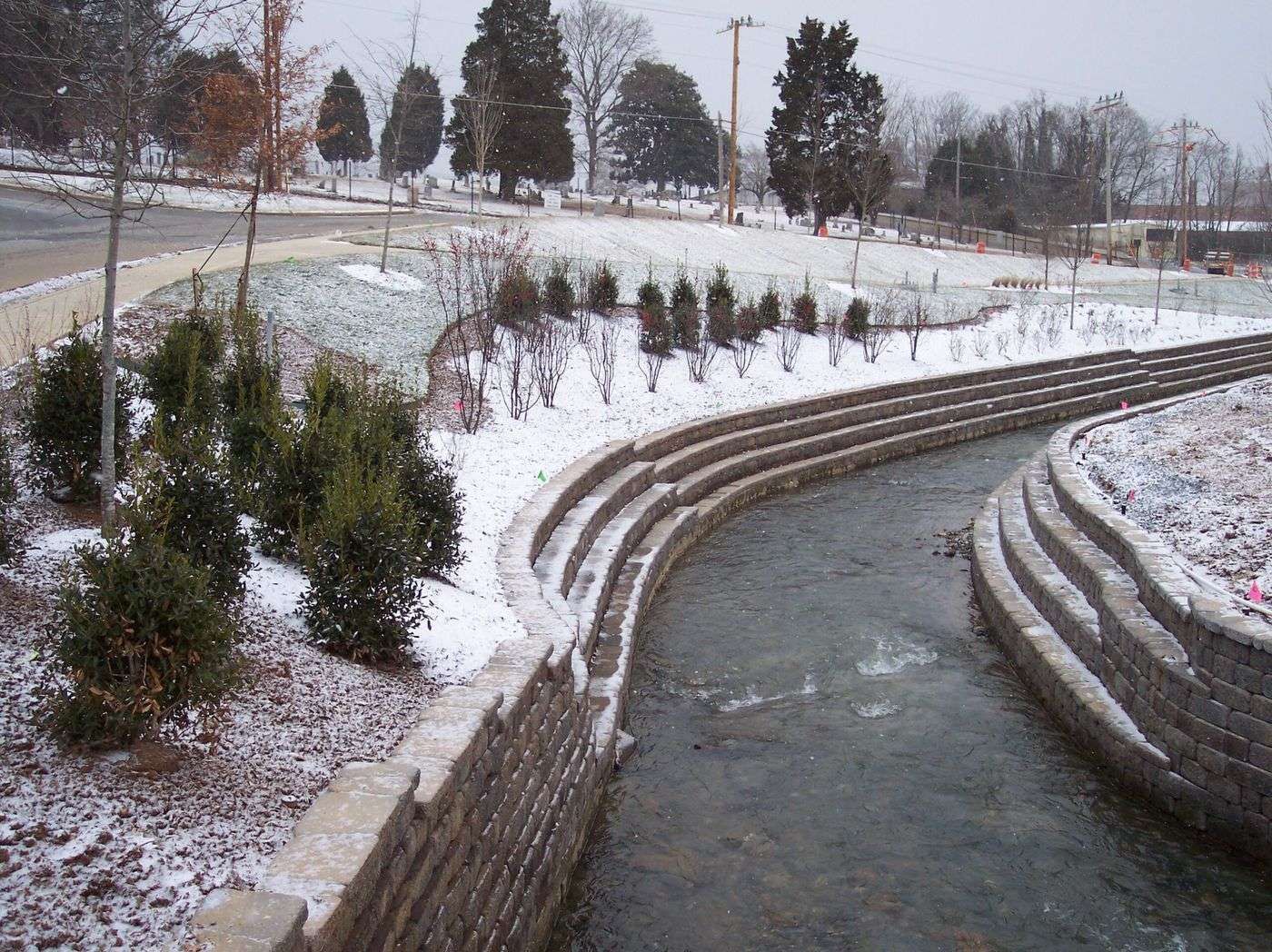 Since its completion in December of 2013, Founders Park provides an outstanding downtown gathering area, improved local drainage, an environmentally sound stream and a major step in the implementation of the Master Plan. Founders Park not only provides some relief to downtown businesses after years of crippling floodwaters, but it also incorporates a sustainable green space for Johnson City residents and visitors to enjoy.